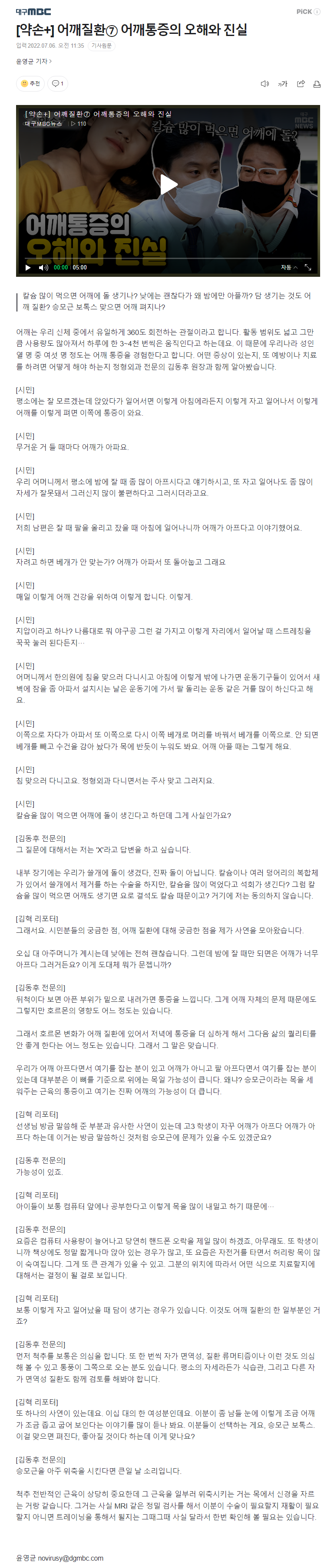 방송에서 어깨질환에 대해 보다 자세히 알려드렸는데요,