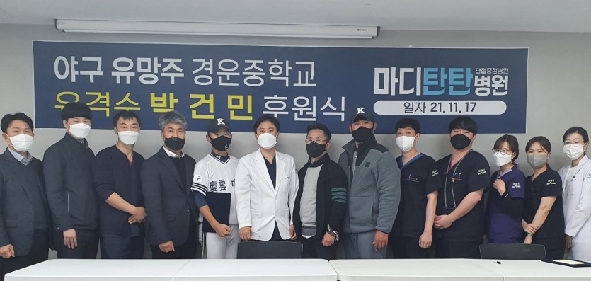 2021년 11월 17일 본원에서 야구 유망주 박건민선수와 곽동현감독님의 후원식이 있었습니다.