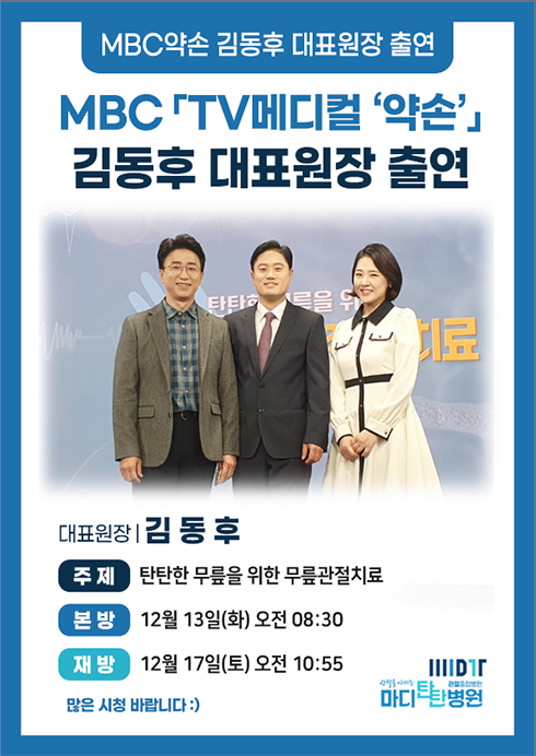 12월13일 (화)오전 8:30 대구 MBC < TV 메디컬 약손> 김동후 병원장님 출연예정