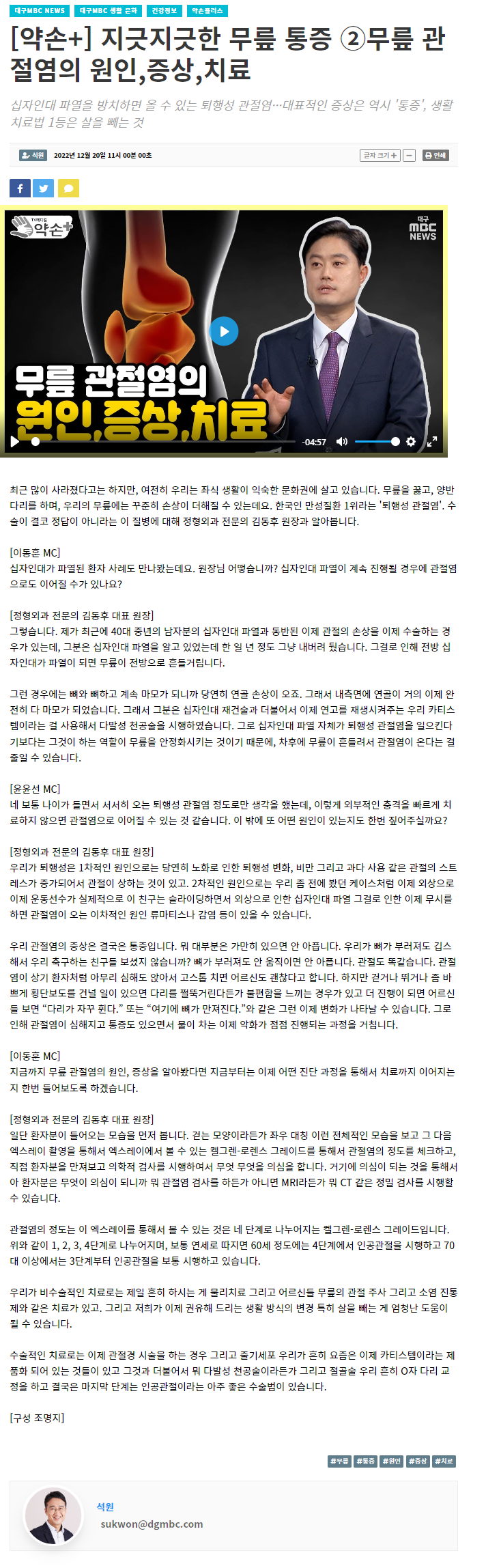 방송에서 무릎관절치료에 대해 보다 자세히 알려드렸습니다: )