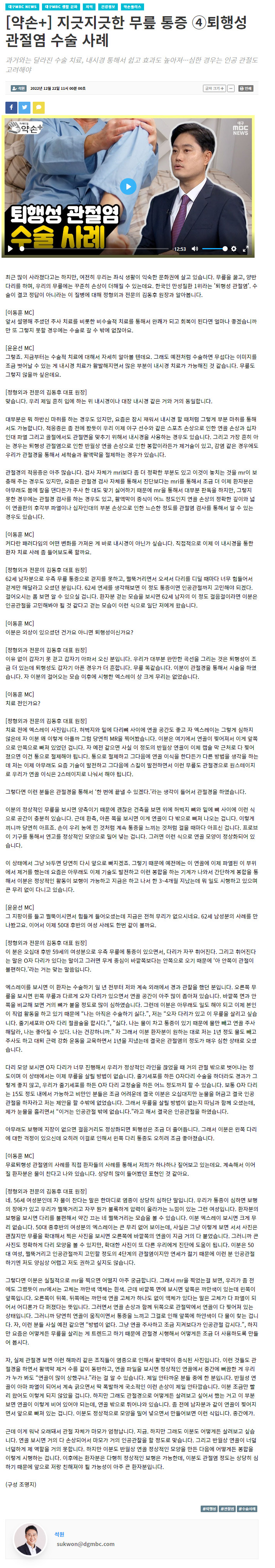 TV 메디컬 약손 출연 , 김동후대표원장님 대구 mbc 신문기사 - 4 (12월22일)