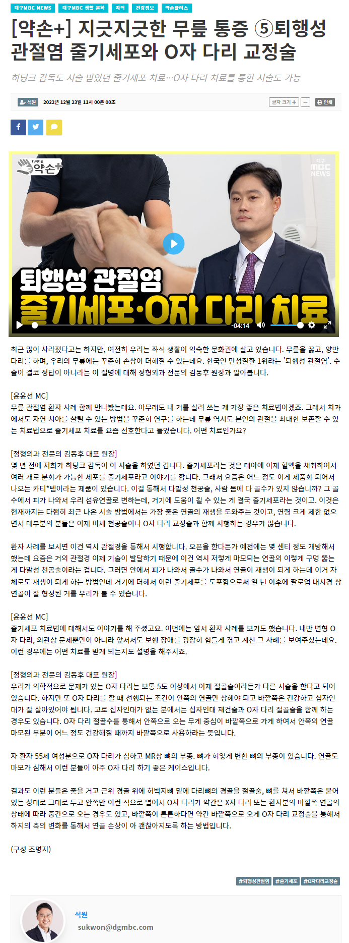 - 다음글TV 메디컬 약손 출연 , 김동후대표원장님 대구 mbc 신문기사 - 4 (12월22일) 22.12.26