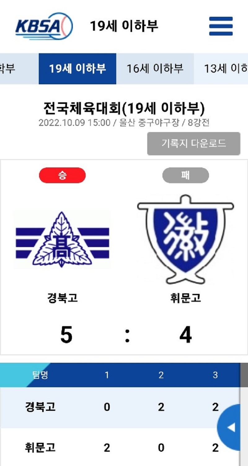 경북고의 멋진 승리를 축하하며 , 남은 경기 또한 승리를 기원합니다!