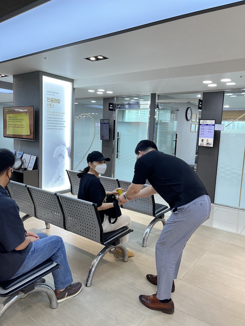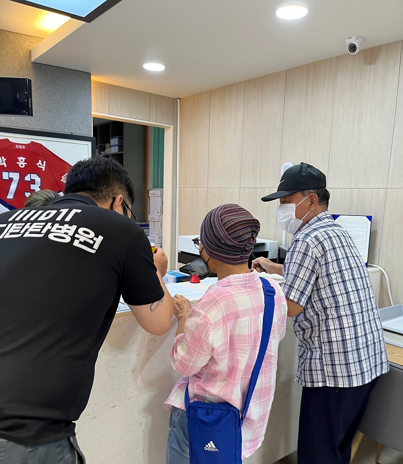 더위를 날려줄 시원한 식혜와 도넛을 준비해 내원하시는 모든 환우분들께 한분한분 나누어 드렸습니다.