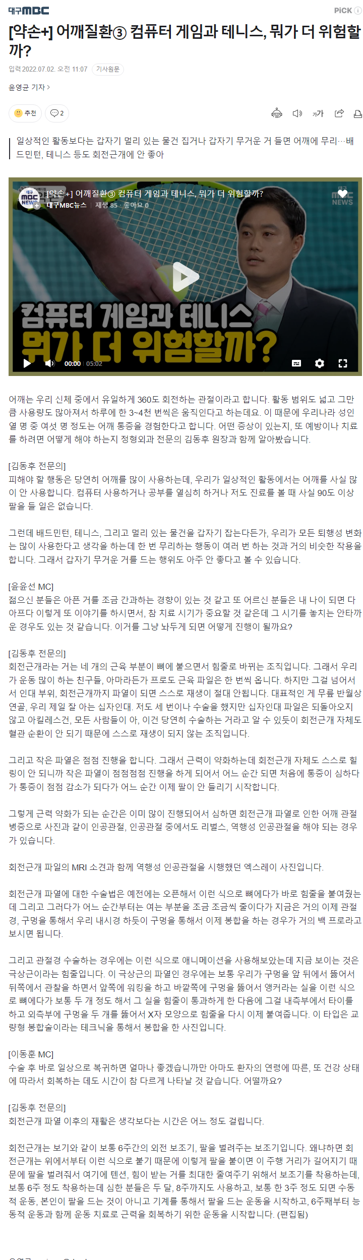 방송에서 어깨질환에 대해 보다 자세히 알려드렸는데요,