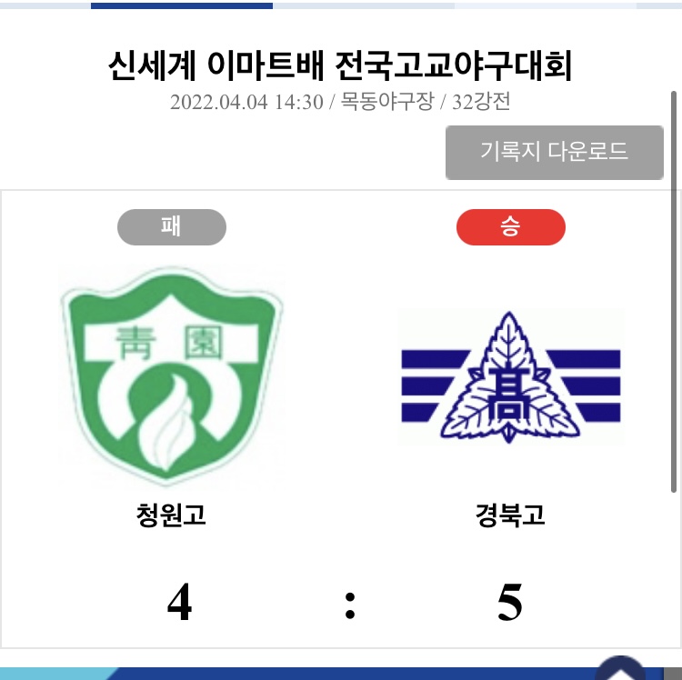 4월 4일 경북고 대 청원고 경기에서 3루수 배상현 선수와 함께 팀승리에 기여하여 16강에 안착하였습니다