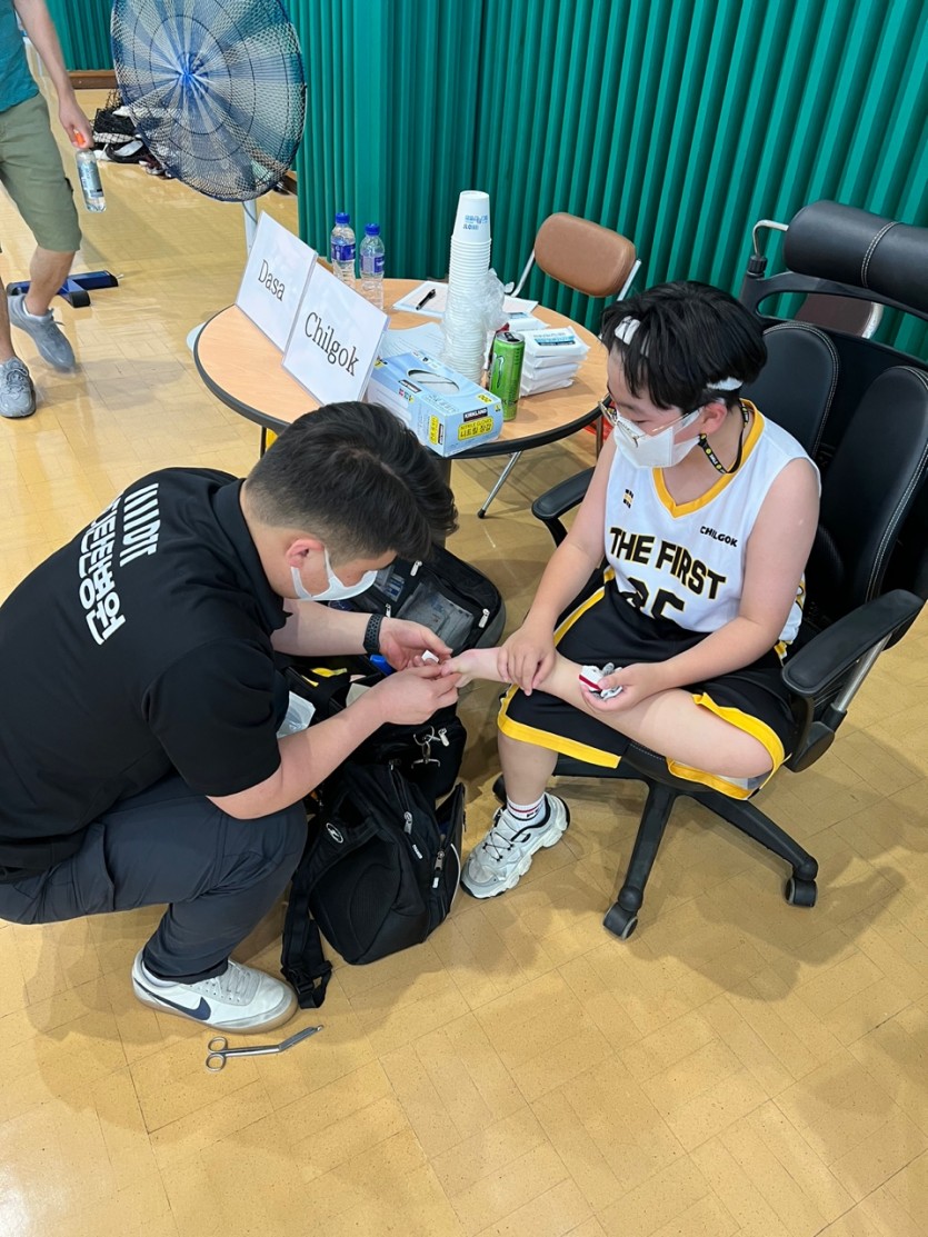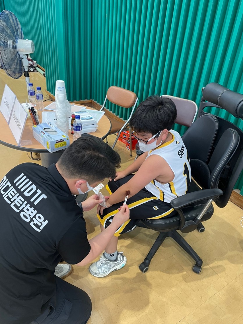 부상당한 선수 아이들 찰과상 소독및 테이핑 등 의료 지원하였습니다.