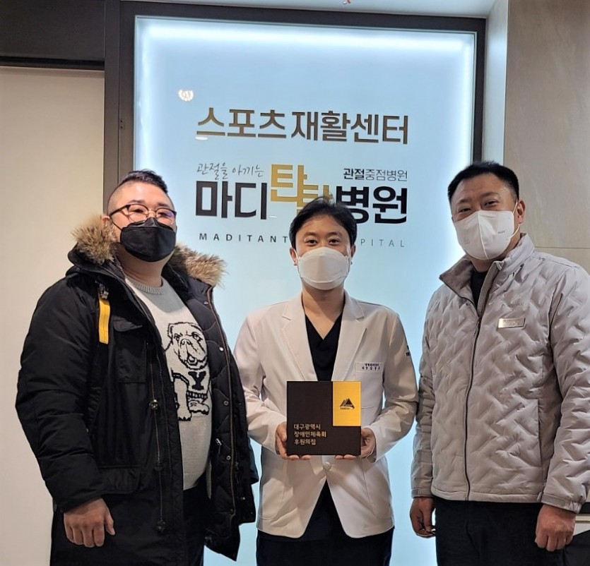 저희 마디탄탄병원은 대구광역시 장애인 체육회 제9기 지원단으로 협약을 체결하였습니다