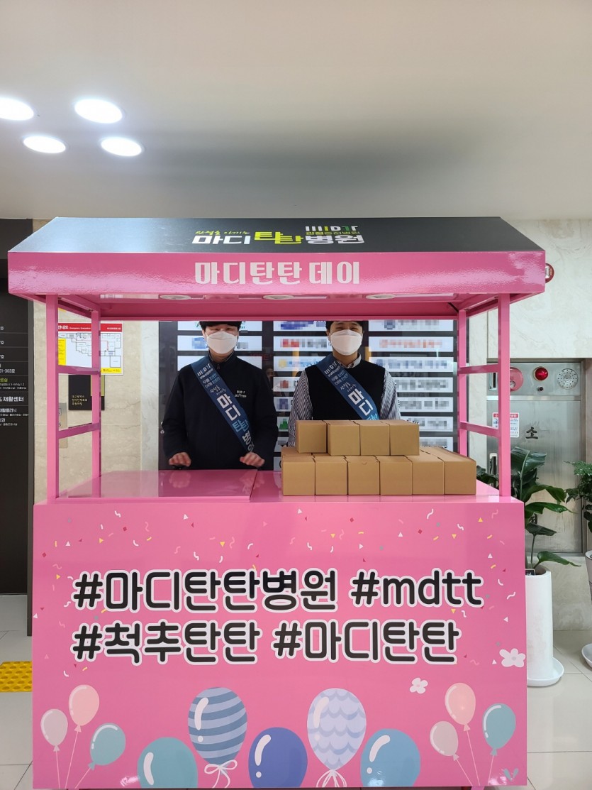 2022년02월28일 마디탄탄데이행사 페이지 정보 작성자 최고관리자 댓글 0건 조회 1,108회 작성일 22-03-03 17:49 본문 2022년 02월 28일 저희 마디탄탄병원에서 마디탄탄데이 행사를 진행하였습니다 환자분들의 빠른 쾌유를 비는 정성을 담아 머그컵을 증정해 드렸습니다 저희 마디탄탄병원에서 치료 받으신 환자분들의 빠른 쾌유 바라며 ,한분 한분 늘 정성과 진심을 담아 진료하는 마디탄탄병원이 되겠습니다 :)관절 척추수술 및 재활은 마디탄탄병원! 목록 이전글2022년 3월 14일 월례조회 22.03.14 다음글SSTC 야구과학연구소 협약체결 22.02.28 댓글목록 댓글목록 등록된 댓글이 없습니다.