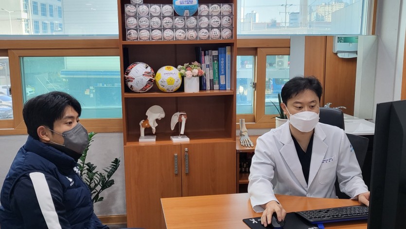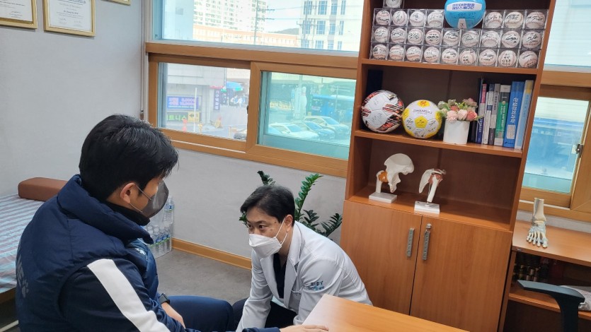 광주 FC MF 두*석선수 진료및 재활운동을 위해 내원하셨습니다