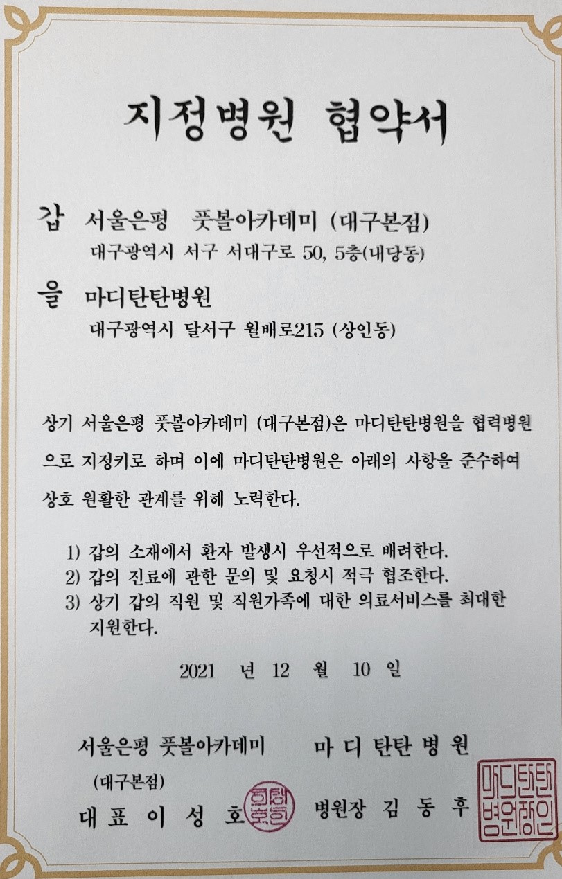 저희 마디탄탄병원과 서울은평 풋볼아카데미의