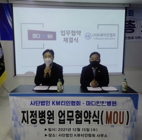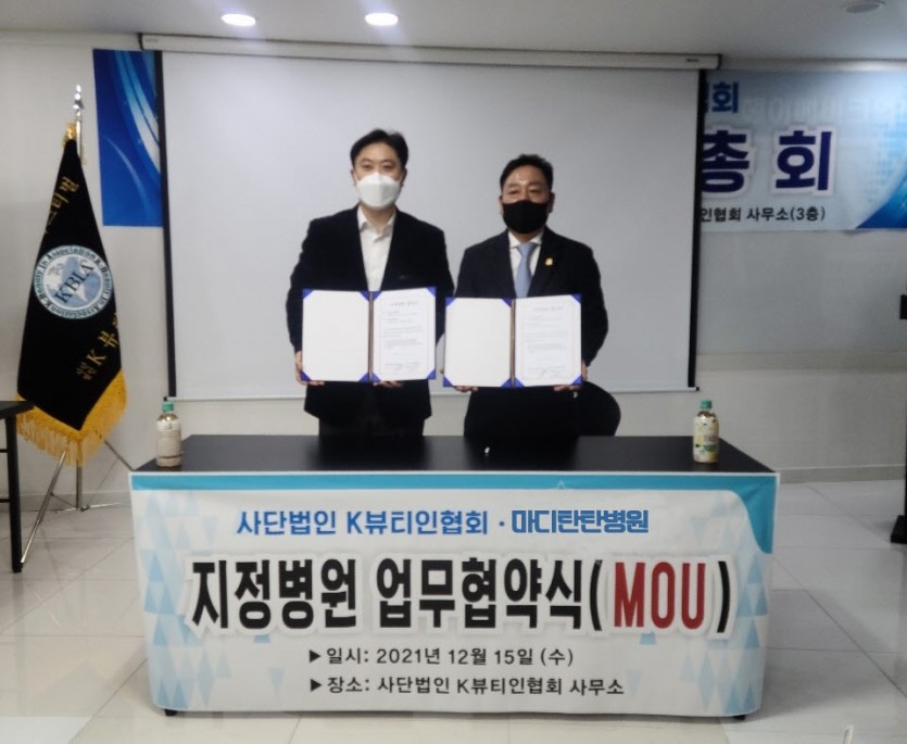 21년 12월 15일 사단법인 K뷰티인협회와 마디탄탄병원 협약식