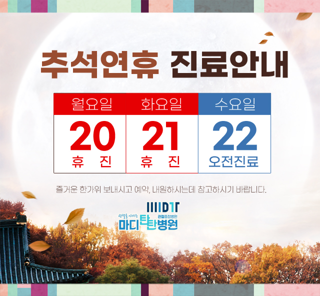 추석연휴 진료안내 페이지 정보 작성자 최고관리자 댓글 0건 조회 968회 작성일 21-09-09 11:42 본문 추석연휴 진료안내 목록 이전글2021년 9월 월례조회 21.09.13 다음글전 삼성라이온즈 1군타격코치 "박*식감독님" 내원 21.09.08 댓글목록 댓글목록 등록된 댓글이 없습니다.